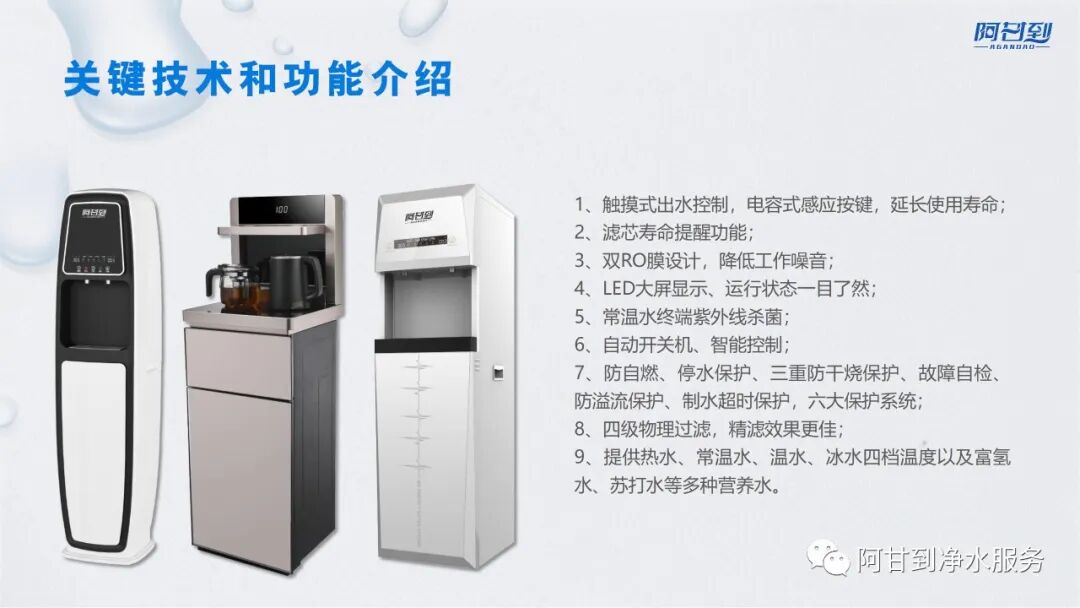 通過這次合作,我們的品牌也將與劉佳慧一起,向消費者展示我們的產品和服務。我們將以這位**為榜樣,激勵人們追求**,超越自我。阿甘到品牌,始于2017年,是一家專注于物聯網智能飲水服務的創新型公司。通過創新的技術手段和服務模式,阿甘到已成功建立了一個完善的云端系統,實現了產品質量可視化、服務標準化、響應0延遲、設備管理數字化和用戶運營自動化。2023年起,阿甘到聚焦行業細分領域,為解決企業運營中存在飲水設備采購資金占用大、設備質量不一、后勤服務差等痛點,首創5免市場推廣模式,為企業提供高性價比的全程飲水質量可視化和5GNB-IOT等辦公飲水全生命周期解決方案。一直以來,阿甘到秉承“制造更好的產品”的宗旨,在工藝上精益求精;組建**技術研發團隊,專注節能高效產品的研發;同時擁有多項權威技術資質認證和專利,你們的信任就是對我們的支持阿甘到始終堅持“以客戶為中心”的服務理念,依托專業的飲水服務數字化新模式,針對不同客戶的需求,為客戶提供安全、便捷、滿意的飲水服務,贏得了廣大客戶的好評和支持。 未來,阿甘到將繼續秉承為客戶提供優質的飲水和服務的理念,不斷創新和提高服務質量,與客戶共享美好生活!